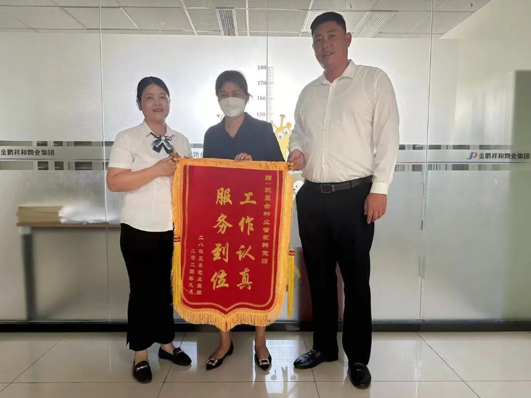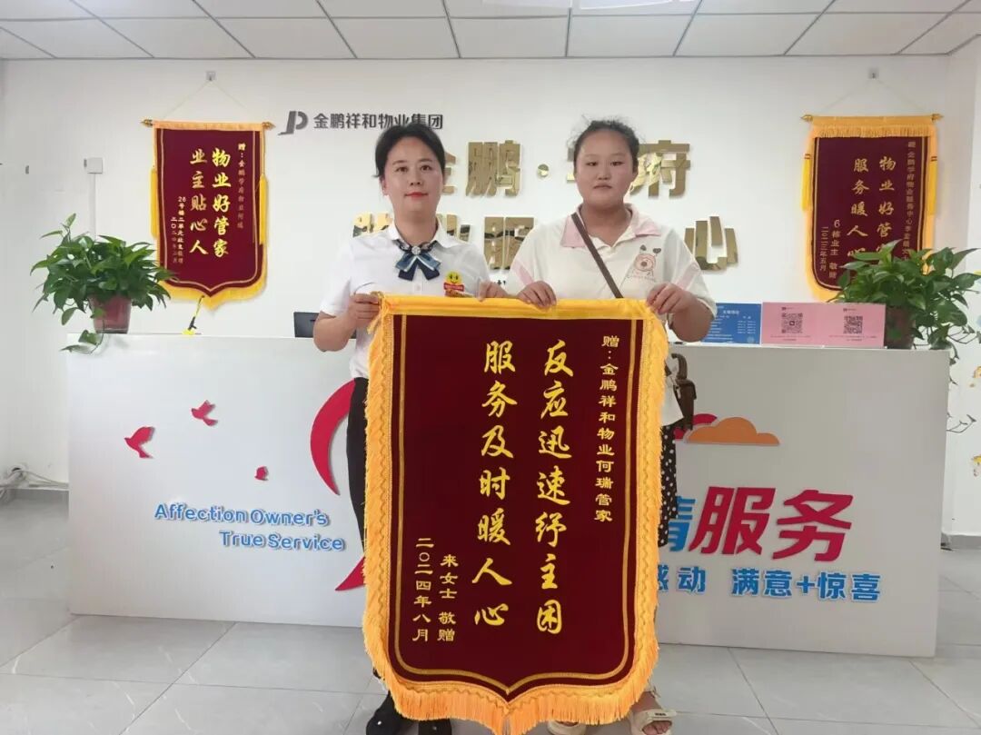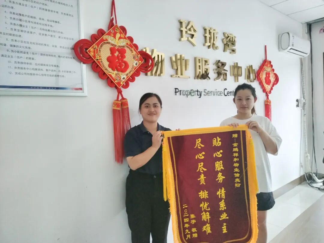 服务印象集㉒ | 从心出发,以爱服务发表时间:2024-09-26 16:13 让我康康是谁收到了锦旗? TA是可靠助手,在业主遇到困难时挺身而出 TA是贴心人,耐心解决业主生活中的诉求 TA是家的守护者,不分昼夜默默守望 TA是每一个用心服务的金鹏祥和物业人 ![]() ![]() ![]() ![]() ![]() ![]() ![]() 以贴心服务守护业主的开心 “您需要我的时候,我都在!” ![]() 2024年8月,金鹏学府物业服务中心的客服何瑞收到18栋业主送来的一面锦旗。 ![]() ![]() 金鹏学府 管家何瑞 她是社区向导!金鹏学府18栋的一位业主一家刚从北京搬回金鹏学府,对周围环境极不熟悉,何瑞承担起指引者的角色,主动其介绍商超、医院等。 她是业主身边的可靠助手!最近男业主需要在医院照顾生病的孩子而分身乏术,女业主又因意外烫伤脚行动不便。面对这样的突发情况,何瑞在关键时刻挺身而出,承担起接送打吊瓶、收拾日常垃圾及买菜的任务。 业主被何瑞的真情和用心所打动,特送上一面锦旗以表感谢之情! ![]() 帮业主家开窗透气 ![]() 拜访业主 ![]() 以耐心服务守护业主的放心 “家的每一个过程,都有我们的参与。” ![]() 2024年8月27日,朗月书苑物业服务中心客服司美、郑国丽收到1栋施先生业主送来的两面锦旗。 ![]() ![]() 朗月书苑 管家司美 郑国丽 她们超级可靠!起初,业主家报修多项维修一直未完全解决,管家司美、郑国丽数度穿梭于维修工作之间跟进现场,直至所有维修事项得到圆满解决。 她们超有责任心!在房屋装修阶段,她们定期巡查,主动记录下装修的每一个进展,通过照片和反馈,让不能亲临现场的业主随时掌握装修动态。 装修完毕后,主动为新房开关窗户透气。 ![]() 帮助业主整理装修材料 ![]() 为业主家开窗透气 她们办事效率超高!当业主决定将房屋对外出租时,再度将这份信任托付于管家之手,管家凭借专业和高效执行能力,迅速将房屋成功出租。 此番深情厚意与卓越服务,深深触动了业主的心弦,特赠锦旗以示感激! ![]() 以热心服务守护业主的舒心 “在我心中,您的事就是头等大事!” ![]() 2024年9月21日玲珑湾物业服务中心收到业主赠与管家储兆盼的一面锦旗。 ![]() ![]() 玲珑湾 管家储兆盼 业主对储兆盼的表现给予了高度评价,她平日里乐于助人,积极为业主们处理各种琐碎事务。 此次尤为突出的是,储兆盼在不引发任何冲突和矛盾的情况下,成功解决了一楼业主家中宠物频繁在楼道内随意排泄的不文明现象,充分展现了她热心服务、高效解决问题的能力。 ![]() 清理杂草 ![]() 教师节送花 ![]() 以真心服务守护业主的安心 “您的安心,是我们最大的追求。” ![]() 2024年9月24日,珑玺台物业服务中心的管家韩玉娟收到了一面炙热的锦旗。 ![]() ![]() 珑玺台 管家韩玉娟 28栋的一位业主家阳台瓷砖多次脱落,经维修未完全解决。楼栋管家韩玉娟了解情况后,多次跟进对接,终于妥善解决维修事宜。韩玉娟的真心服务也得到了业主的认可,业主不仅主动缴纳了两年的物业费,还特意送来了一面锦旗对韩玉娟表示感谢! ![]() 检查楼道卫生 ![]() 安装灭蝇笼 ![]() 锦旗是荣誉,是赞许,更是对我们最好的褒奖! 这份荣誉将激励我们继续以最诚挚的心, 为每一位业主提供更加周到的服务。 金鹏祥和物业以专业,守护您的安心!