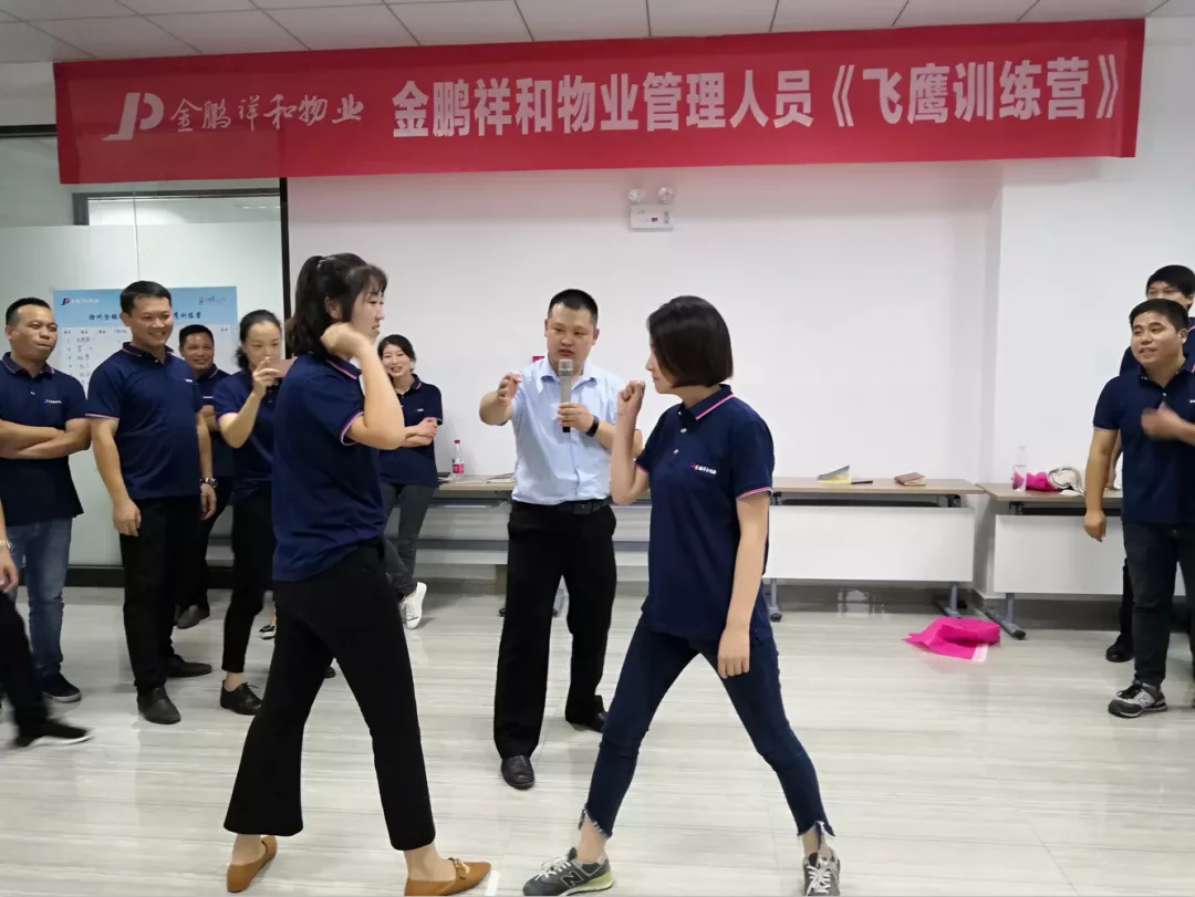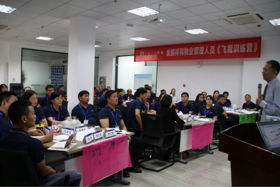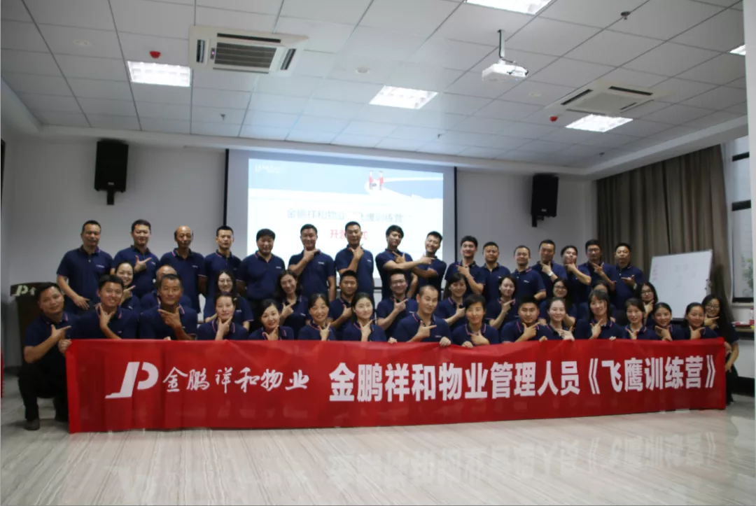 战略提升|金鹏祥和物业“飞鹰训练营”第一阶段培训顺利举行发表时间:2018-10-25 10:00 为提升金鹏祥和物业团队凝聚力和执行力,加强管理人员的管理能力,建立公司的战略人才梯队,打造学习型组织,为公司的可持续发展提供人力资源保障。金鹏祥和物业公司 于9月17日--9月19日开展了“飞鹰训练营”第一阶段培训,来自物业公司各项目、各部门70余名骨干人员一同参与本次培训,以部队之魂,军人之姿,凝聚气力,突破自我!